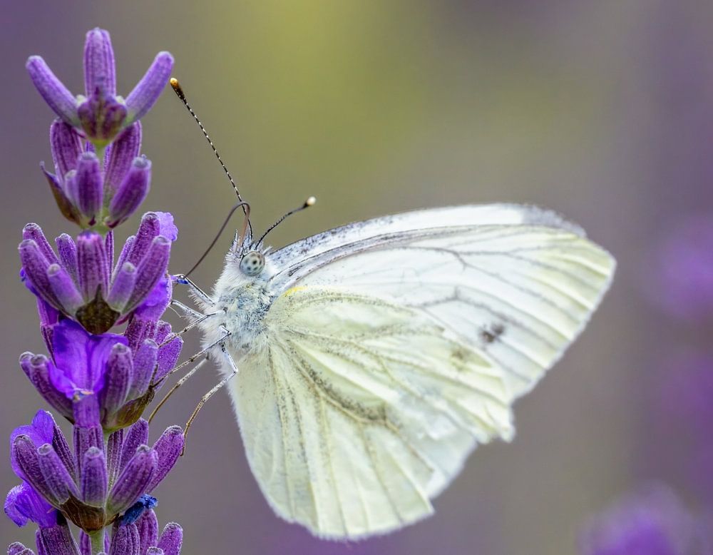Makro von einem Kohlweißling Schmetterling auf einer Lavendel Blume