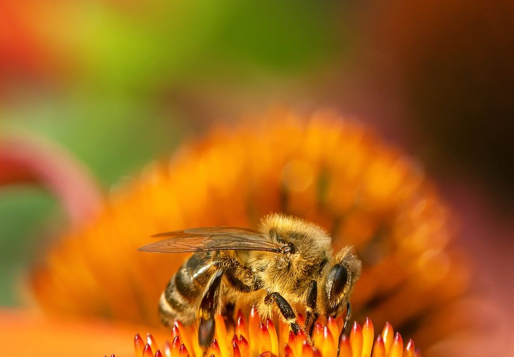 Makrofoto von einem Sonnenhut und einer Biene. Aufgenommen in meinem Garten den ich versuche möglichst bienenfreundlich zu gestalten. Rettet die Bienen!