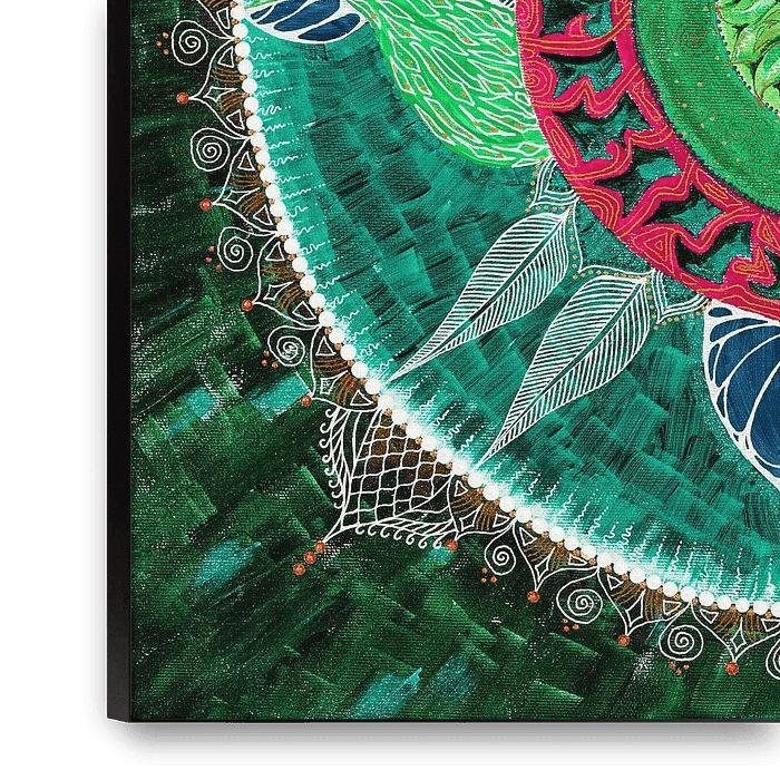 Die Leinwand als Spiegel der Seele. Meine Bilder entstehen intuitiv. Dabei entscheide ich vorab nur, ob es ein Mandala oder ein freies Bild werden soll. Was dann im Prozess entsteht, überrascht mich oft selbst.