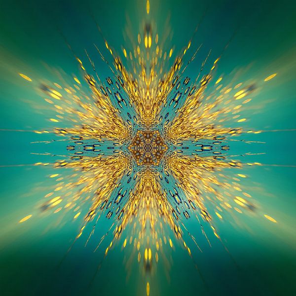 Ein feurig leuchtendes und energiegeladenes Mandala mit Wassertropfen