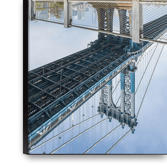 Dieses beeindruckende Foto fängt die Manhattan Bridge aus einer ungewöhnlichen und faszinierenden Perspektive ein, indem es ihre Spiegelung in einer Wasserpfütze zeigt. Die perfekte Symmetrie und Klarheit des Spiegelbildes verwandeln die berühmte Brücke in ein fast surrealistisches Kunstwerk. Die Textur des nassen Asphalts verleiht der…