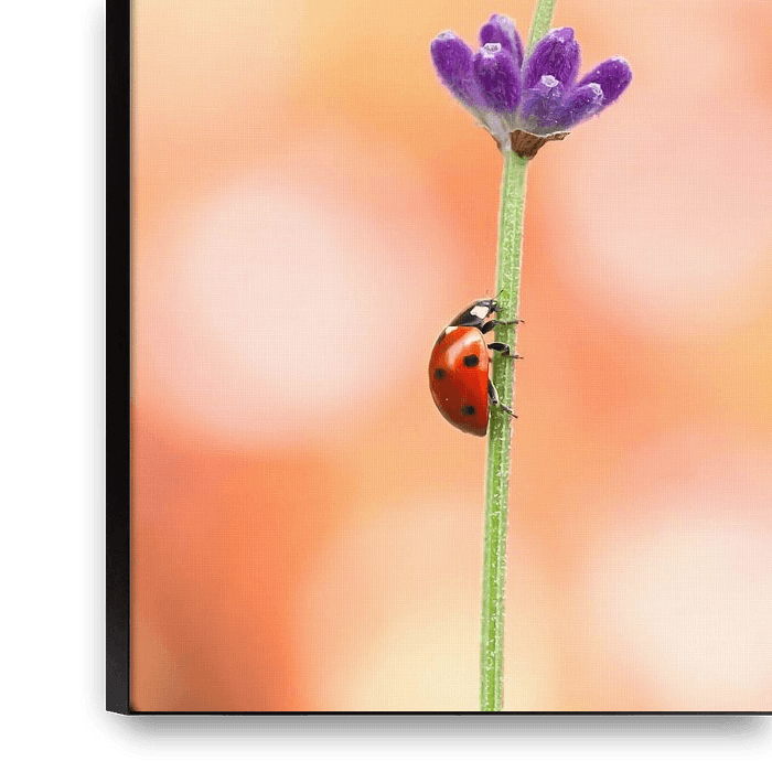 Bestelle das Foto Marienkäfer auf Lavendel von Andrea Hofstra als Reproduktion auf Leinwand, Alu-Dibond, als Poster, Fototapete oder Acrylglasbild.