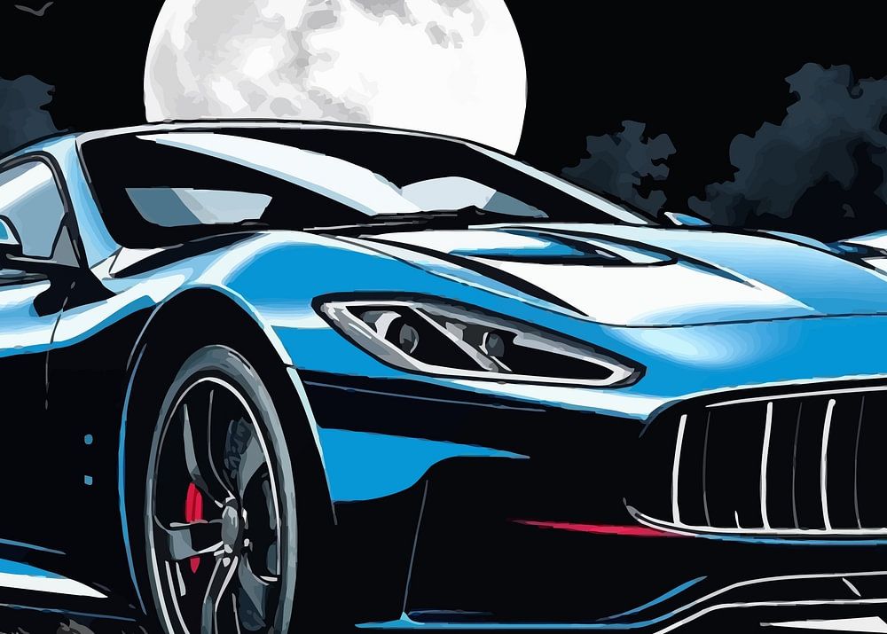 Maserati MC20 bei Mondschein auf der Rennstrecke