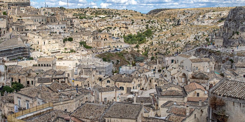 Bestelle dieses Landschafts-Wandbild Matera Apulien Italien von Luc De Cock als Reproduktion auf Leinwand, Alu-Dibond, als Poster, Fototapete oder Acrylglasbild.