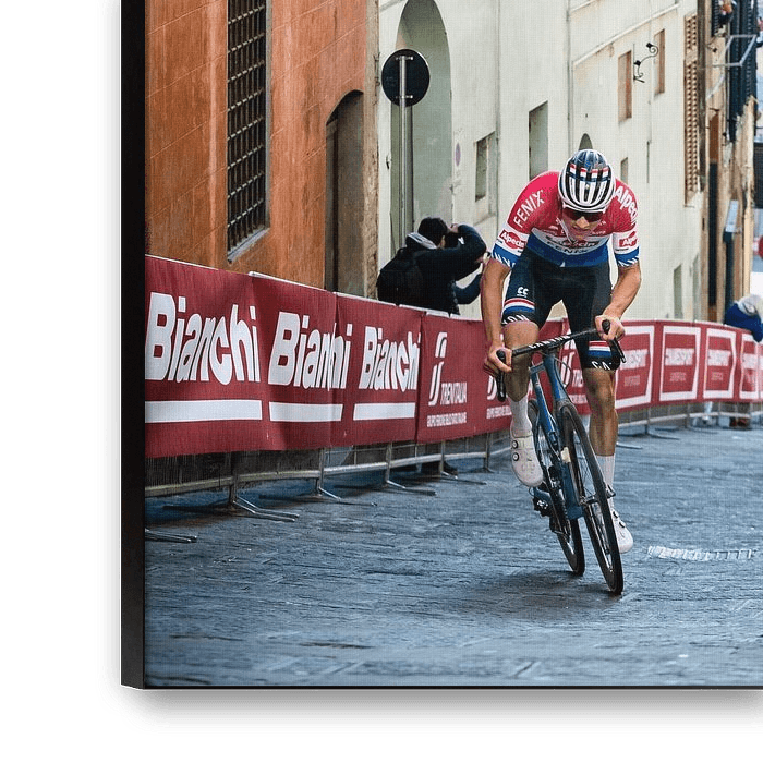 Bestelle das Foto Mathieu van der Poel gewinnt in Siena von Leon van Bon als Reproduktion auf Leinwand, Alu-Dibond, als Poster, Fototapete oder Acrylglasbild.