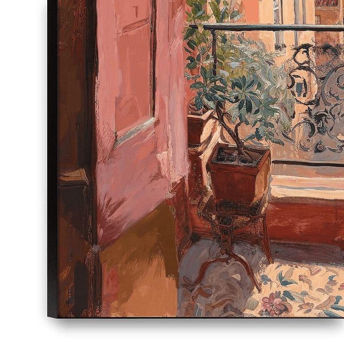 Ihre gewählte Kunst auf Leinwand, gespannt in einem Aluminiumrahmen. Schnell und einfach austauschbar für eine frische Ausstrahlung und ganz nach Ihren Wünschen.