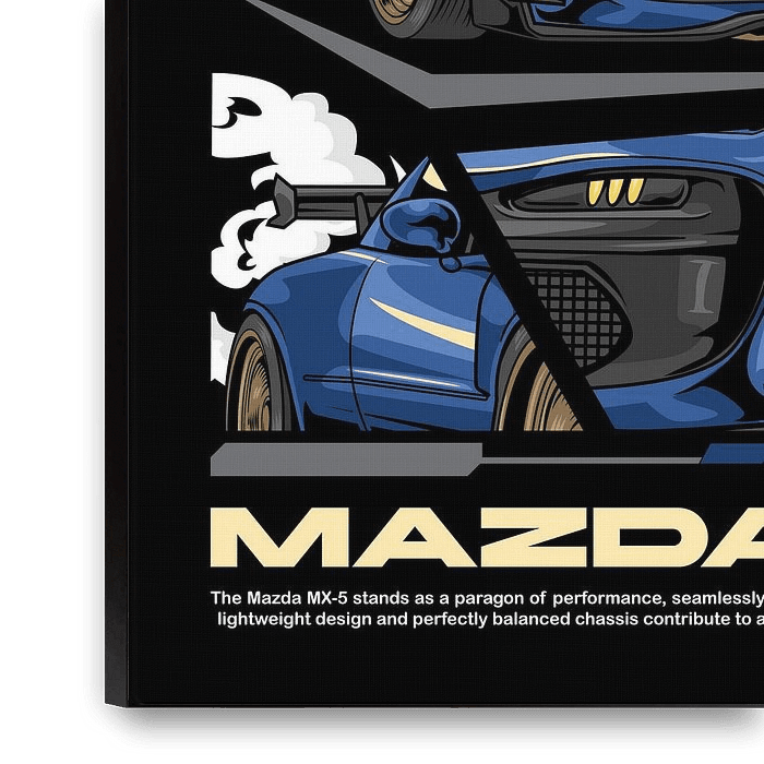 Bestelle diese Illustration Mazda Miata MX-5 JDM Auto von Adam Khabibi als Reproduktion auf Leinwand, Alu-Dibond, als Poster, Fototapete oder Acrylglasbild.