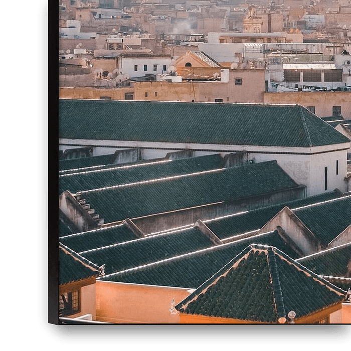 Dieses Bild wurde von einer Dachterrasse in der Medina von Fez aufgenommen. Sie überblicken die Moschee und die Universität Karaouiyn mit ihren schönen grünen Dächern.