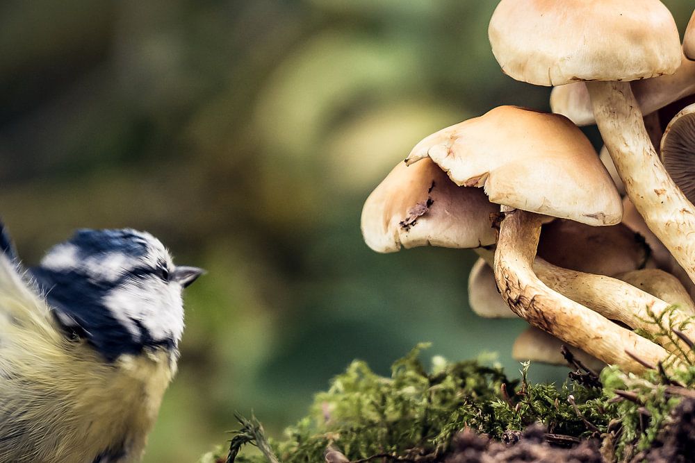 Meise an Pilzgruppe