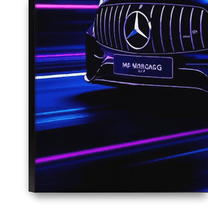 Bestelle das digitale Kunst Bild Mercedes-AMG GT Neon von MIROKKU als Reproduktion auf Leinwand, Alu-Dibond, als Poster, Fototapete oder Acrylglasbild.