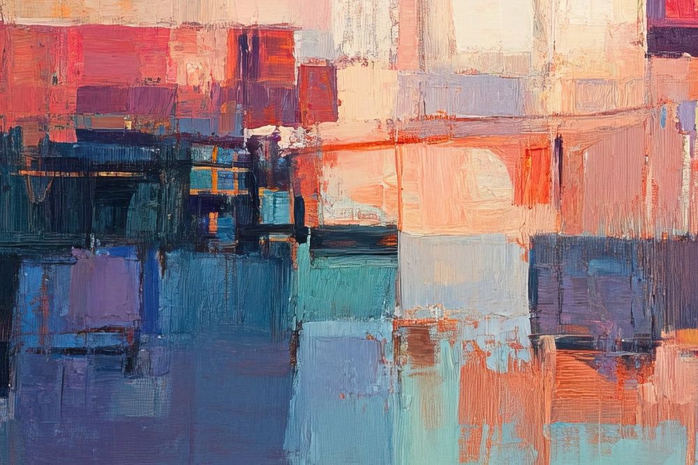 Mexico Abstract | Burst of Silence - Dieses abstrakte Gemälde ist von Mexiko inspiriert und konzentriert sich auf die Schaffung einer abstrakten Landschaft mit dynamischen, blockartigen Formen, die mit kräftigen Farben und Kompositionen ein Gefühl von Ort und Emotionen ausdrücken.