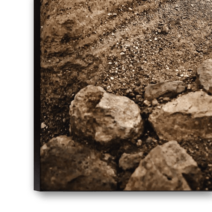 Dieses Foto zeigt einen geschichteten Felsblock, der wahrscheinlich aus verdichteter und verfestigter vulkanischer Asche besteht und aufeinanderfolgende Schichten offenbart, die im Laufe der Eruptionen und Ruhephasen des Vulkans abgelagert wurden. Die scheinbar körnige und unregelmäßige Textur zeugt von einem langen und komplexen geologischen Prozess, bei dem sich Mineralpartikel und pyroklastische Rückstände unter dem Einfluss von Druck, Feuchtigkeit und Zeit angesammelt und dann zementiert haben. Das warme Licht, das sich darin spiegelt, unterstreicht die Vielfalt der Ockertöne und zeigt auf subtile Weise die Mineralflocken, die an der Oberfläche glitzern. Im verschwommenen und nebligen Hintergrund sind weitere ähnliche Wände zu erkennen, die daran erinnern, dass dieses Relief nicht isoliert ist, sondern Teil einer Reihe von Formationen, die durch die kontinuierliche Erosion von Wind, saurem Regen und der für Kawah Ijen typischen Geothermie geformt wurden. Diese Art von Struktur erzählt eine stille Geschichte: Jede Linie, jede Nuance des Materials ist ein Fragment aus der Vergangenheit des Vulkans, ein geologisches Gedächtnis, das vor unseren Augen eingefroren ist. Dieses Bild fängt sowohl die Ästhetik der rohen Materie als auch die stille Präzision der geologischen Zeit ein.
