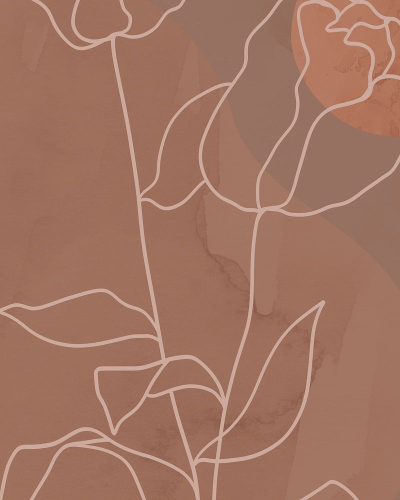 Minimalistische Illustration einer Blume und vier organischer Formen in Variationen von Braun und Orange.