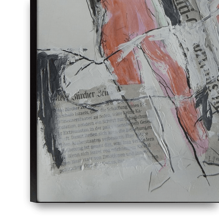 neben der Verwendung von Gouache Farben, verwende ich auch Zeitungsartikel etc., um die Lebendigkeit des Werkes weiter zu unterstreichen.