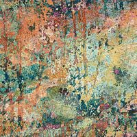Terrakotta, Grün, Lila und Braun. Dieses Werk ist eine Vergrößerung eines Ausschnitts aus dem Werk Moderne abstrakte Komposition in Herbstfarben 1.