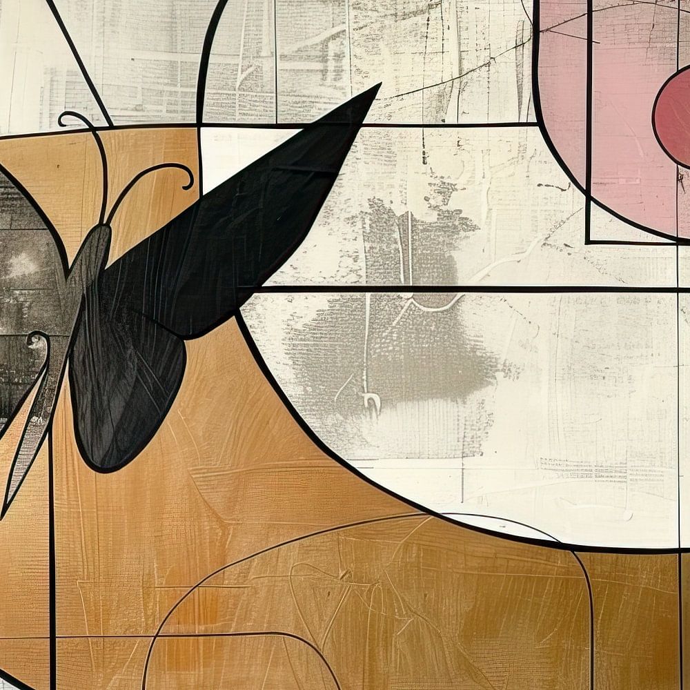 Der Schmetterling verleiht dem Ganzen einen Hauch von Poesie und bildet einen harmonischen Kontrast zu den klaren Linien und großen Formen.