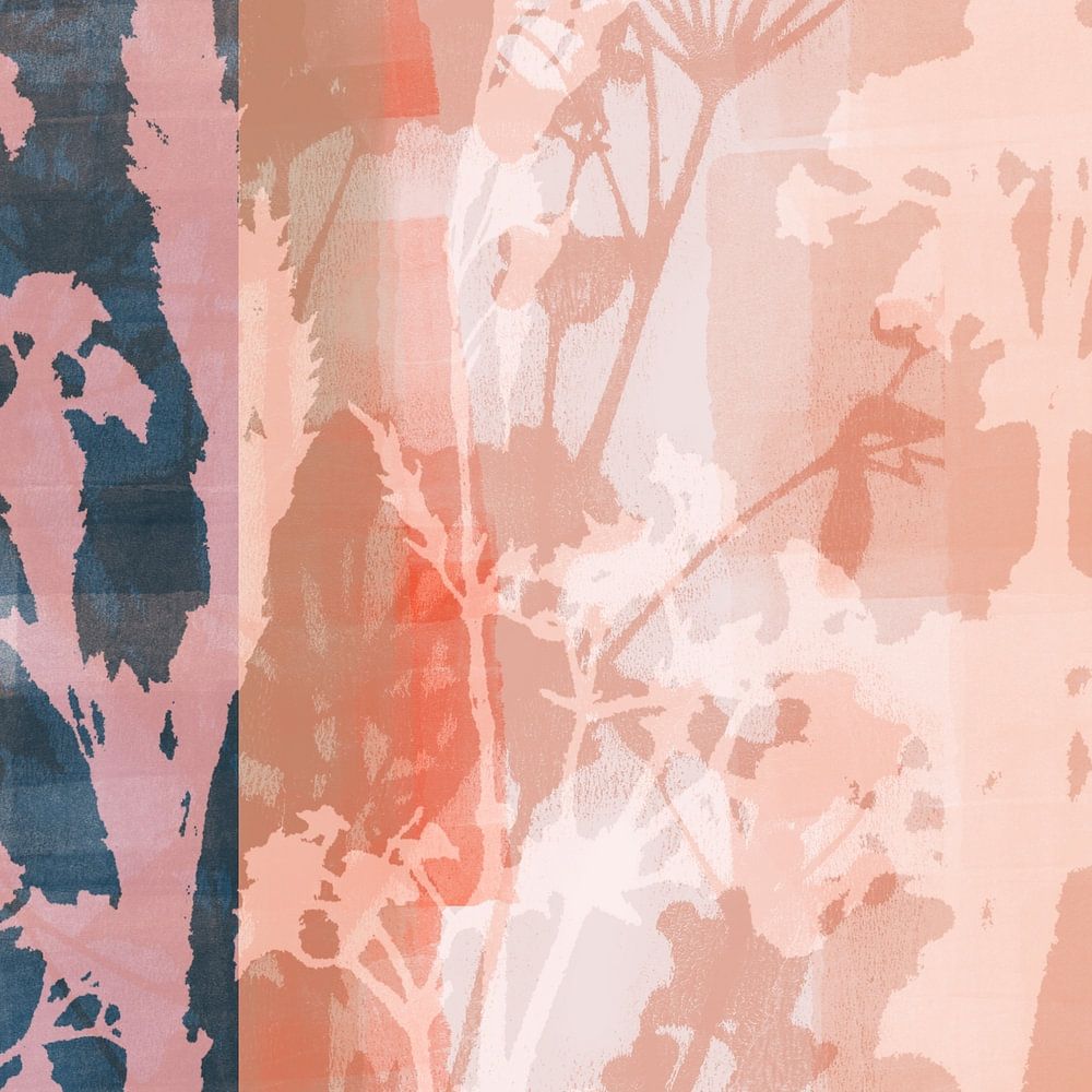 Collage aus Monotypie-Texturen, Blumen und Pflanzen, modernen Formen und Linien.