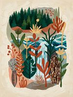 Bestelle dieses abstrakte Wandbild Modernes biophiles Design mit Waldlandschaft und Wasserfall von Studio Pieternel als Kunstdruck auf Leinwand, Alu-Dibond, als Poster, Fototapete oder Acrylglasbild.