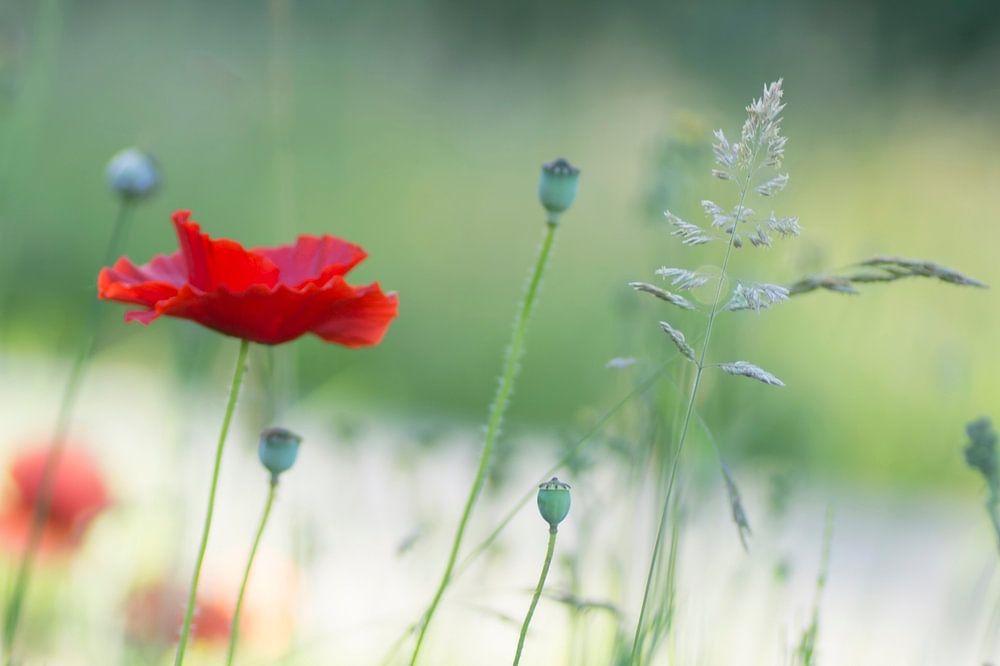 Schön, wie die Natur unserer Umgebung immer eine andere Atmosphäre und Farbe verleiht. Die zarten Töne des Frühlings, die üppigen Farben der Sommerblumen, die warme Atmosphäre des Herbstes und die eisige des Winters. Auf diesem Sommerfoto sieht man unter anderem farbenprächtige Mohnblumen zwischen den Gräsern und anderen Sommerblumen am Rande des Wassers. Sie erinnert sofort an einen warmen Sommertag, an dem man die Bienen zwischen den Blumen summen hört. Genießen Sie es mit mir und verleihen Sie Ihrer Einrichtung einen sommerlichen Touch.