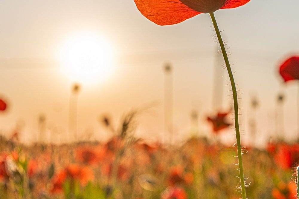 Ein Mohnfeld bei Sonnenuntergang in Leest bei Mechelen