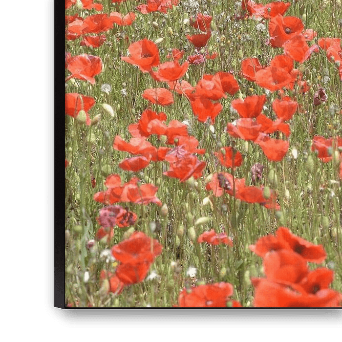 Foto eines Mohnblumenfeldes, aufgenommen in Apulien in Italien. Blumenwiese in der Sonne. Im Sommer entstanden. Rot auf Grün.