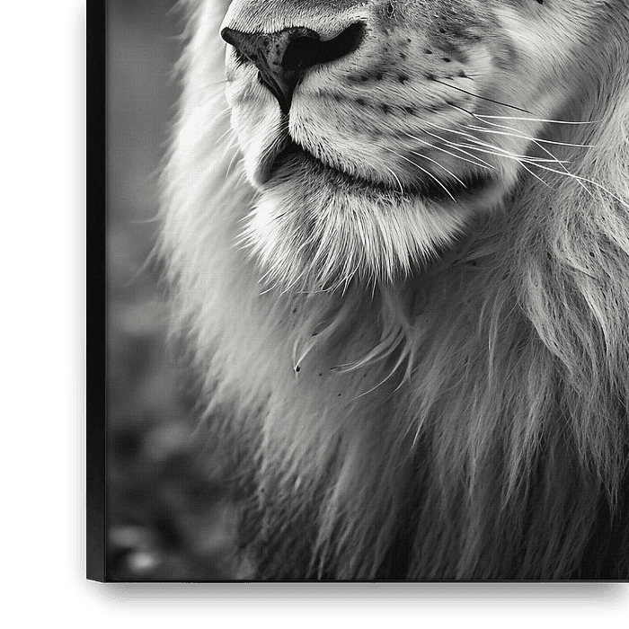 Bestelle dieses Löwen-Wandbild Monochrom Löwe von NJ Midnight Studio als Reproduktion auf Leinwand, Alu-Dibond, als Poster, Fototapete oder Acrylglasbild.