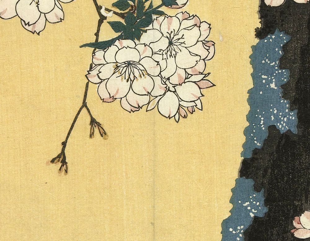 Bestelle Moosiger Stamm und Kirschblüten, Hiroshige als Reproduktion auf Leinwand, Alu-Dibond, als Poster, Fototapete oder Acrylglasbild.