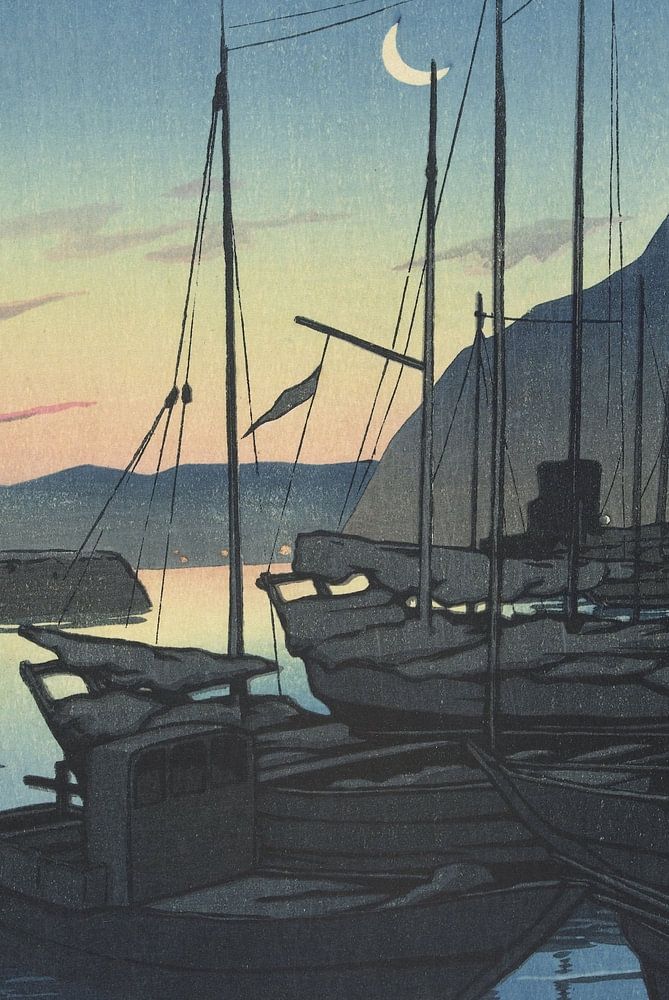 Hasui Kawase (1883-1957) war ein Künstler, einer der wichtigsten und produktivsten Grafiker des modernen Japan. Er war ein prominenter Entwerfer der Shin-Hanga-Bewegung ("neue Drucke"), deren Künstler traditionelle Themen in einem von der westlichen Kunst beeinflussten Stil darstellten. Wie viele frühere Ukiyo-e-Grafiken waren Hasuis Werke in der Regel Landschaften, zeigten aber atmosphärische Effekte und natürliche Beleuchtung.