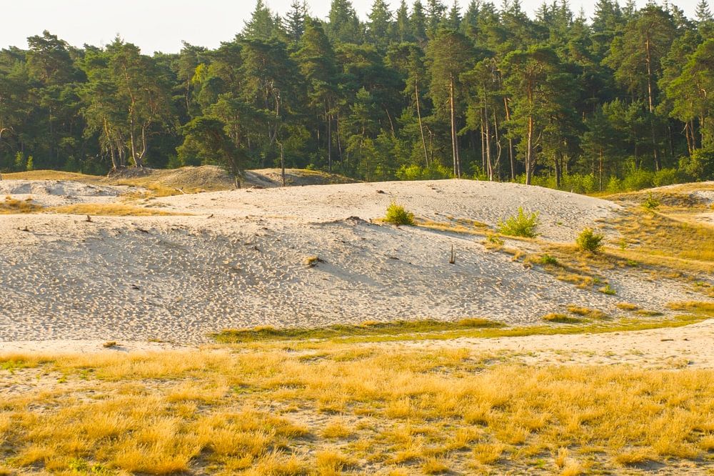 In den Wäldern von Ommen liegt eine Sandverwehung mit dem treffenden und übertriebenen Namen "Sahara". Die Morgensonne beleuchtet die sanft geschwungenen Sandhügel und bringt die Farben zum Leuchten.