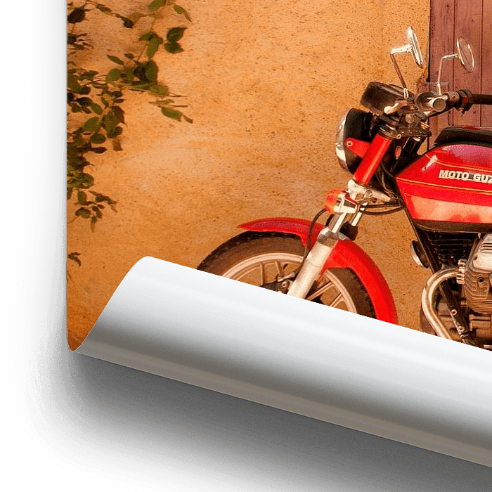 Bestelle dieses Stilleben Moto Guzzi von Saskia Staal als Reproduktion auf Leinwand, Alu-Dibond, als Poster, Fototapete oder Acrylglasbild.