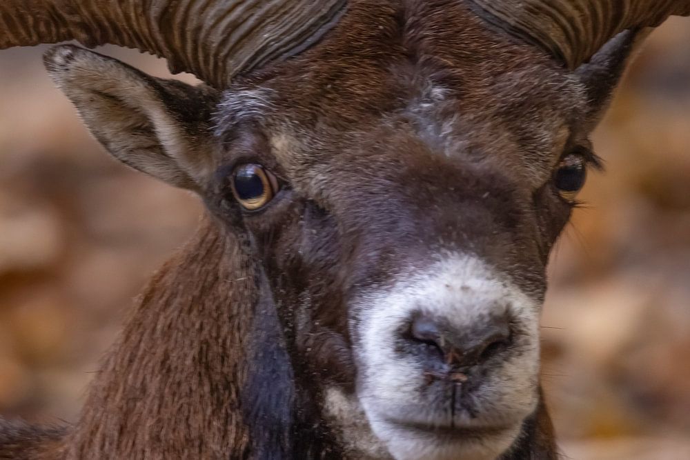 Das Mufflon (Ovis orientalis) ist das kleinste Wildschaf. Beide Geschlechter haben Hörner. Je älter das Tier, desto größer die Hörner. Sie kräuseln sich hinter den Ohren und können bis zu 85 Zentimeter lang werden. Schafe auf Sardinien haben keine Hörner, Schafe auf Korsika und dem europäischen Festland haben kurze Stümpfe. Außerdem haben die Schafböcke im Winter einen auffälligen hellen Sattel, weiße Socken und Schnauze sowie einen dunklen Nacken, Schultern und Oberschenkel. Im Sommer sind diese Markierungen weniger offensichtlich. Bei älteren Rüden sind der Sattel und die Schnauze heller gefärbt. Weibchen und junge Männchen haben ein rötlich-braunes bis schokoladenbraunes Fell mit einem weißlichen Bauch. Das Fell ist recht kurz.
