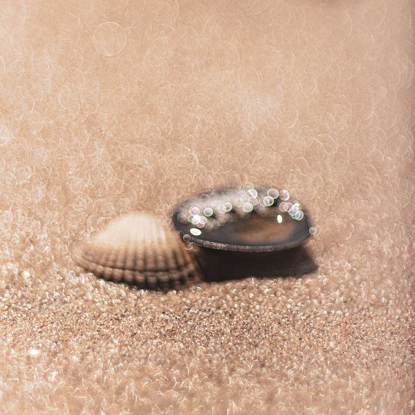 Muscheln am Strand mit viel Bokeh um sie herum.