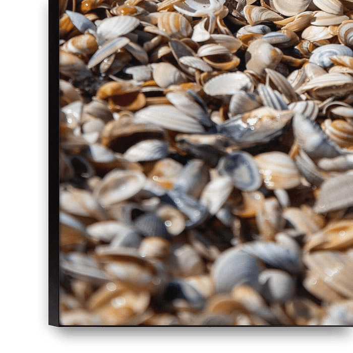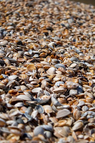 Das Foto wurde am Strand der Stadt Monster aufgenommen. Es gab eine Fülle von kleinen Muscheln, die ich aus einer niedrigen Perspektive fotografiert habe.