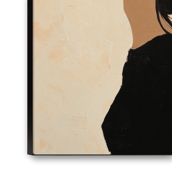 In sanften, erdigen Tönen erstrahlt eine nachdenkliche Silhouette, die den Kopf leicht in den Himmel hebt. Der Kontrast zwischen der dunklen Kleidung und dem hellen Hintergrund verstärkt die Ausdruckskraft des Gesichts und der geschlossenen Lippen. Ein Moment der inneren Ruhe und Hoffnung wird spürbar, als würde sie eine verborgene Wahrheit ergründen.