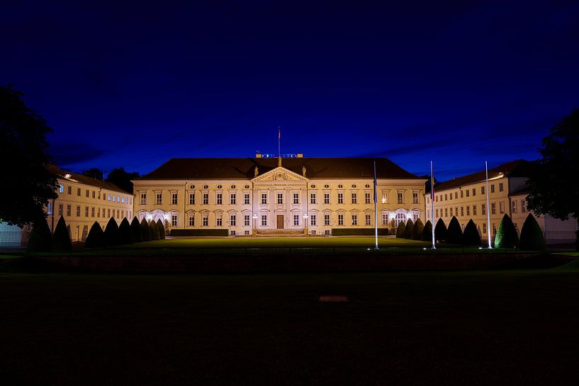 Bestelle das Foto Nachtaufnahme Schloss Bellevue in Berlin von Jenco van Zalk als Reproduktion auf Leinwand, Alu-Dibond, als Poster, Fototapete oder Acrylglasbild.