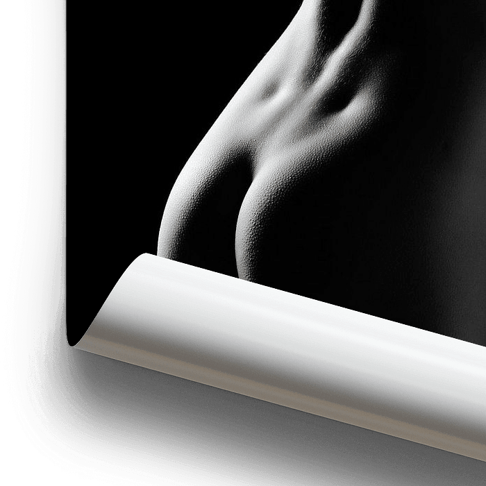 Unauffälliges Bodyscape-Bild einer jungen Dame in Schwarz-Weiß.