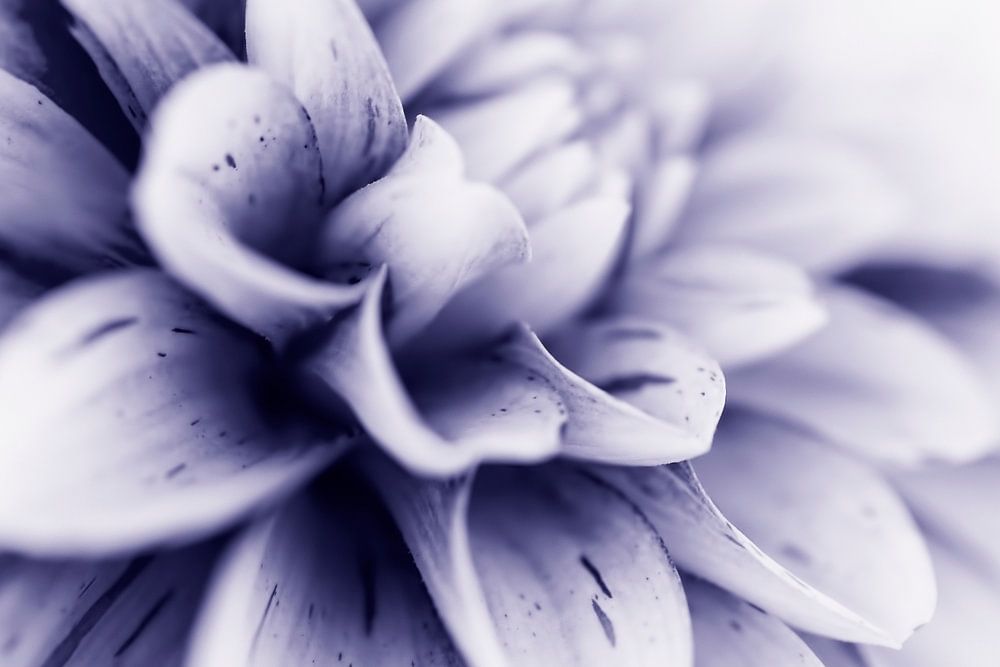 Die ursprünglich zartrosa Dahlie auf diesem Foto fiel mir wegen der schön gezeichneten und geformten Blütenblätter auf, die so schön platziert sind. Es hat mir Spaß gemacht, dieses Foto bläulich zu färben, um ein etwas subtileres Bild zu erhalten.