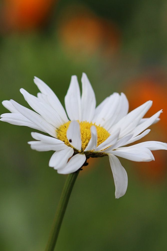 Makroaufnahme eines schönen Gänseblümchens mit orange-grünem Bokeh-Hintergrund