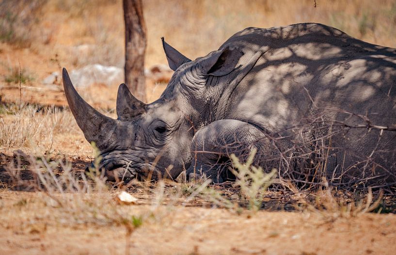 Bestelle das Foto Nashorn in Namibia, Afrika von Patrick Groß als Reproduktion auf Leinwand, Alu-Dibond, als Poster, Fototapete oder Acrylglasbild.