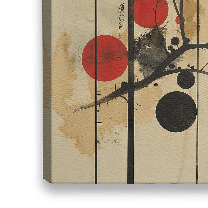 Dieses abstrakte Kunstwerk beeindruckt durch seine naturinspirierten Elemente und die harmonische Farbgebung in Rot, Schwarz und Beige. Die filigranen Linien, die an Äste erinnern, verbinden sich perfekt mit den geometrischen Formen und schaffen eine einzigartige visuelle Tiefe. Ideal für kreative Räume, Büros und moderne Wohnbereiche,…