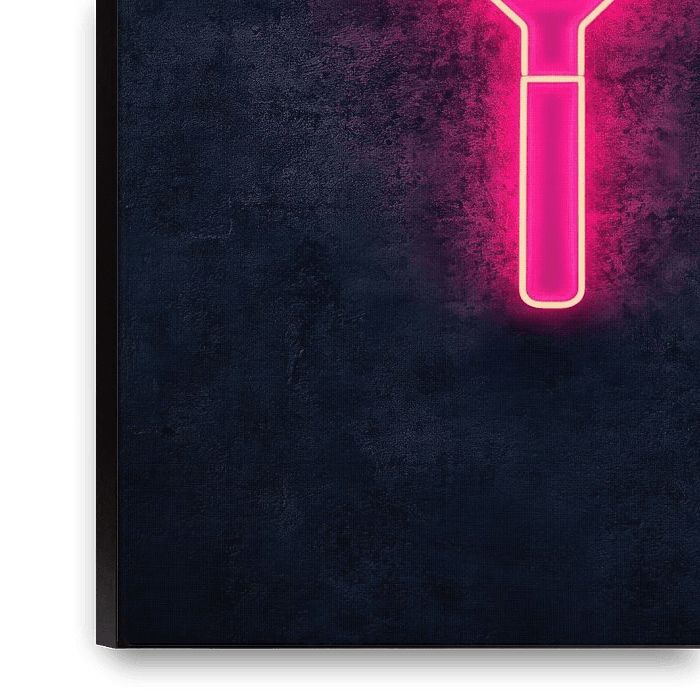 Ein leuchtendes, neonglühendes Objekt strahlt in einem tiefen, mysteriösen Schwarz. Die stilisierte Form, mit einer perfekt runden Oberseite und einem langen Griff, zieht die Blicke an und entfaltet eine faszinierende Energie. Es wirkt, als würde es zwischen den Welten der Realität und Fantasie schweben, bereit, den Betrachter in eine…