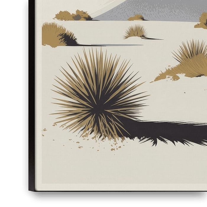 Sanfte, geschwungene Sanddünen erstrahlen im Licht, während spärliche Pflanzen ihren Platz in dieser einzigartigen Landschaft finden. Die klaren, minimalistischen Linien und die zurückhaltende Farbpalette verleihen dem Raum eine ruhige Atmosphäre. Dieses Kunstwerk eignet sich perfekt für ein modernes Wohnzimmer, das Ruhe und Inspiration…