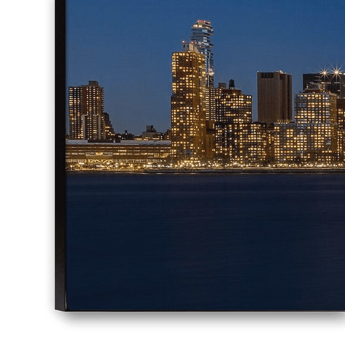 Dieses Bild wurde an einem eiskalten Januartag bei sehr klarem Himmel aufgenommen. Es wurde in der blauen Stunde gemacht, wenn das Licht in den Gebäuden an ist, und es wurde von der New Jersey-Seite über den Hudson River gedreht, mit einer langen Verschlusszeit. Der neue Freedom Tower oder 1 World Trade Center, das mit 1776 Fuß das höchste Gebäude der Stadt, ist prominent präsent. Es ist auch wie das höchste Gebäude des Landes.