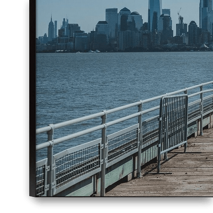 Bestelle das Foto New York am Ende des Piers von Erwin van Kester als Reproduktion auf Leinwand, Alu-Dibond, als Poster, Fototapete oder Acrylglasbild.
