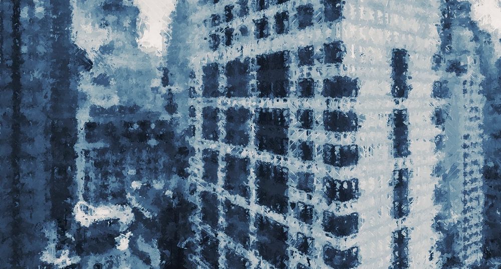 Diese Ansicht des New Yorker Finanzdistrikts zeigt den individuellen Stil "Deep Blue". Die tiefblaue Farbpalette verleiht Ihrem Raum einen zuverlässigen Business-Look. Das Finish verleiht dem Werk einen spielerischen und abstrakten Charakter. Unsere Werke in diesem Stil eignen sich sehr gut für einen Geschäftsraum wie ein Büro oder ein Konferenzzentrum. Unsere Werke werden in einer hohen Auflösung an die Druckerei geliefert, was sie ideal für sehr große Drucke macht.