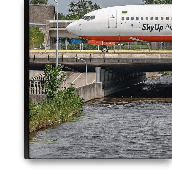 Nicht jede Fluggesellschaft besucht Schiphol. Hier rollt eine Boeing 737 der ukrainischen Sky Up in Richtung Polderbaan für den Heimflug.