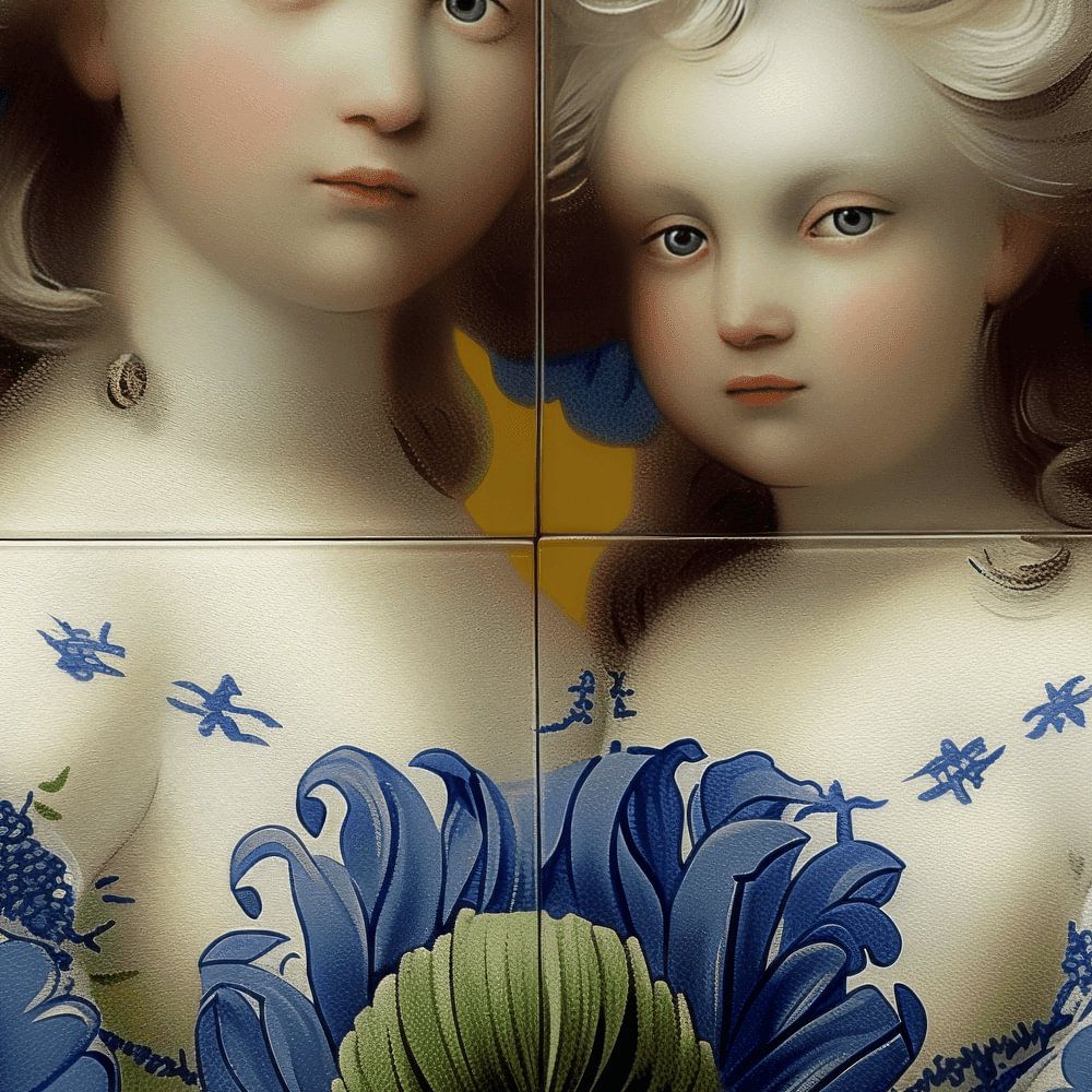 Stel je een collectie voor die zowel klassiek als innovatief is, waarin portretten van vrouwen met een ongekende gratie en verfijning worden afgebeeld op prachtige tegeltableaus. Deze met AI vervaardigde kunstwerken ademen de sfeer en grandeur van de rijke interieurs van herenhuizen uit de Gouden Eeuw in Nederland. Het zijn portretten die een brug slaan tussen historische schoonheid en hedendaagse technologie, waarbij elk tableau een visueel meesterwerk is dat traditie en moderniteit viert.