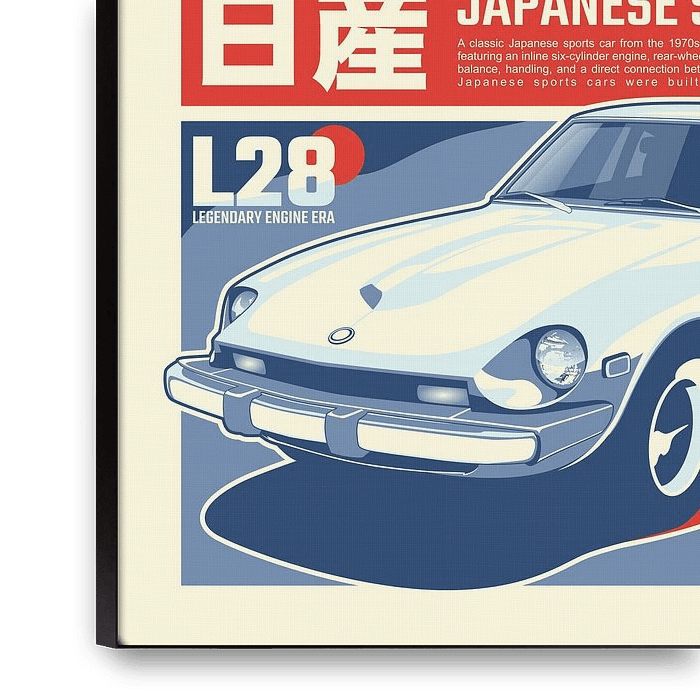 Bestelle dieses Popart-Wandbild Nissan 280Z von Kaminarirace als Reproduktion auf Leinwand, Alu-Dibond, als Poster, Fototapete oder Acrylglasbild.