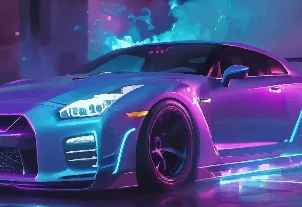 Der Nissan GT-R R35 beherrscht die neongetränkte Szene mit futuristischer Eleganz, ein Sturm der Leistung, eingehüllt in digitales Feuer. Im Schein von elektrischem Licht und aufsteigendem Rauch verkörpert er Bewegung in ihrer reinsten Form. Das Kunstwerk fängt den Moment vor dem Start ein - diese atemlose Stille, in der jedes Detail vor Energie surrt. Neonreflexionen gleiten über seine aerodynamische Form und verwandeln Stahl und Kohlenstoff in Kunst. Der rauchige Hintergrund verstärkt die Tiefe, als ob das Auto selbst das Licht ausstrahlt, das es umgibt - ein Leuchtfeuer roher, mechanischer Perfektion.
