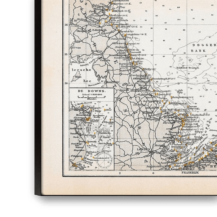 Bestelle diese Illustration Nordsee, Seekarte. Vintage Karte ca. 1900 von Studio Wunderkammer als Reproduktion auf Leinwand, Alu-Dibond, als Poster, Fototapete oder Acrylglasbild.